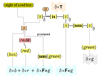 red)," are arbitrary labels used to refer to neural nodes. We could have used labels such as "node 5731" instead. We use the given labels as a heuristic device to suggest to the reader which neural nodes are being referred to in our discussion. The cognitive system, of course, accesses neural nodes directly through their